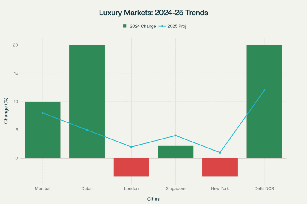The global luxury real estate landscape is experiencing a dramatic polarization in 2025, presenting unprecedented opportunities for sophisticated investors who embrace contrarian strategies. While markets like Mumbai and Dubai command 10-20% annual price gains, London’s Prime Central district has declined 20% from peak valuations, and select US luxury markets face 3-8% corrections. With the global luxury real estate market projected to reach $515.3 billion by 2032 (growing at 6.5% CAGR), and India’s UHNI population surging 50% by 2028, the astute investor recognizes that today’s distressed luxury real estate assets in oversupplied or politically volatile markets represent tomorrow’s generational wealth. This comprehensive analysis reveals where contrarian capital should flow, backed by data from Knight Frank, CBRE, Anarock, and Bloomberg, to capture alpha in an increasingly bifurcated luxury ecosystem.