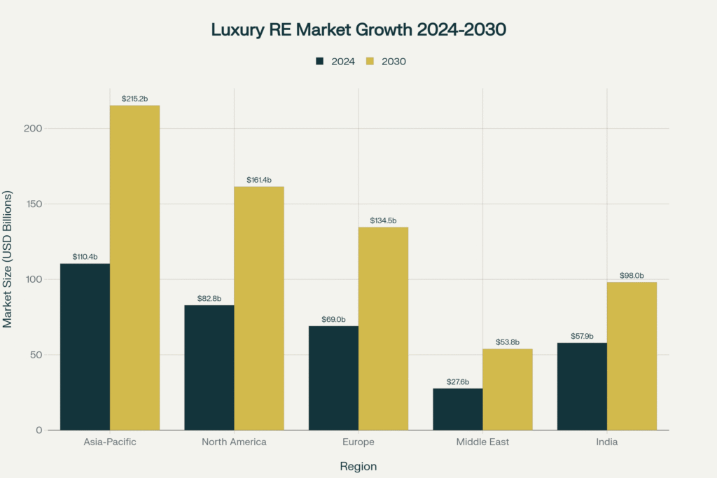 Global luxury real estate market projected to grow from $276 billion in 2024 to $538 billion by 2030, with Asia-Pacific leading regional growth at 11.7% CAGR