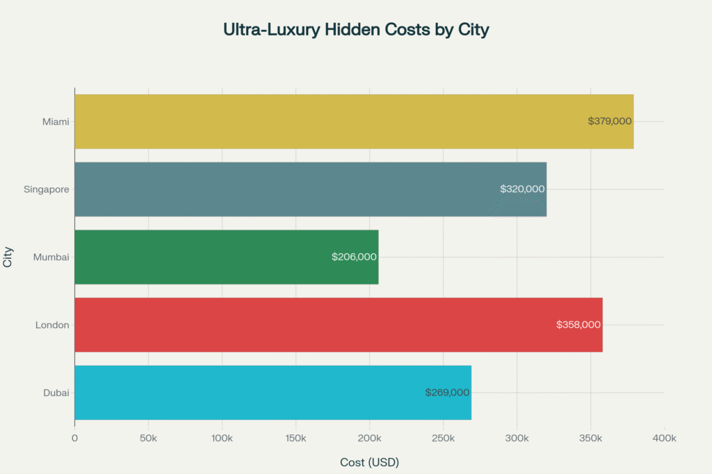 This investigation synthesizes proprietary data from Knight Frank’s Wealth Report 2025, CBRE’s luxury market analytics, and Anarock’s ultra-luxury transaction records to expose the concealed financial architecture beneath trophy properties across Mumbai, Dubai, London, Singapore, and Miami. For Ultra-High-Net-Worth Individuals (UHNIs), High-Net-Worth Individuals (HNIs), and Non-Resident Indians (NRIs) navigating India’s explosive luxury market—projected to surge at a 33.7% CAGR through 2028—understanding these costs isn’t prudent; it’s existential.